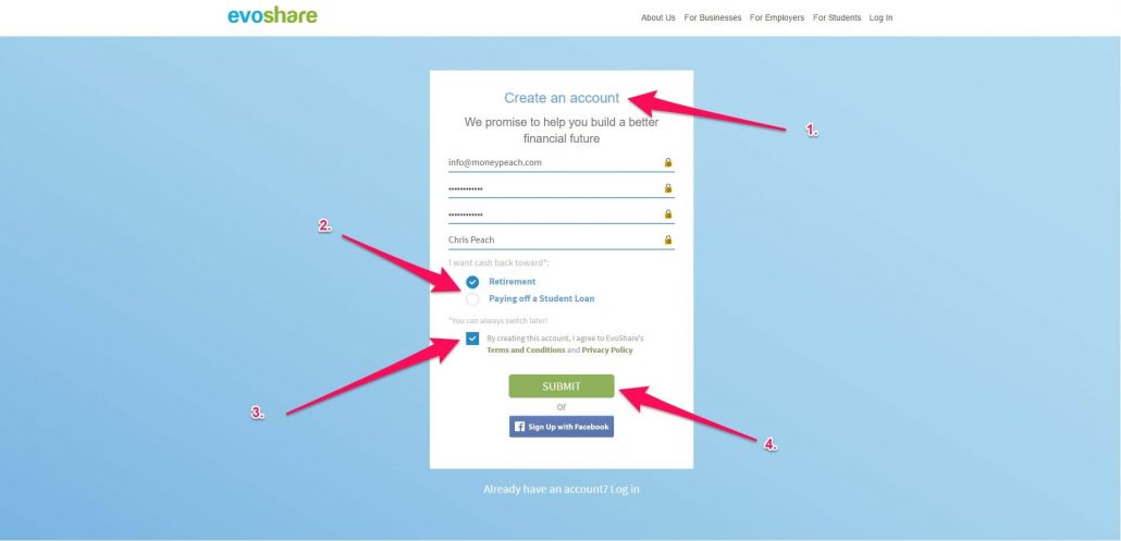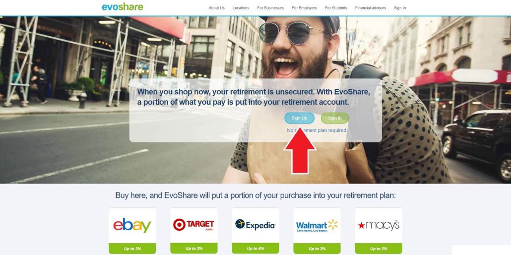 Head on over to Evoshare’s website and click on “Sign Up”