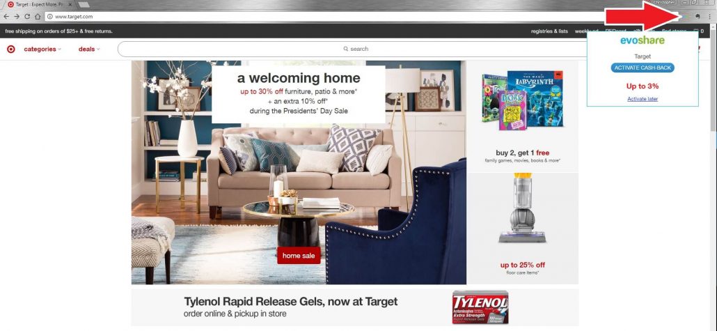 Shopping online via EvoShare is extremely simple. If you are using a Google Chrome, you can download the extension. The extension will light up in your browser whenever you land on a site EvoShare is affiliated with and you can start earning cash-back with a click of a button.