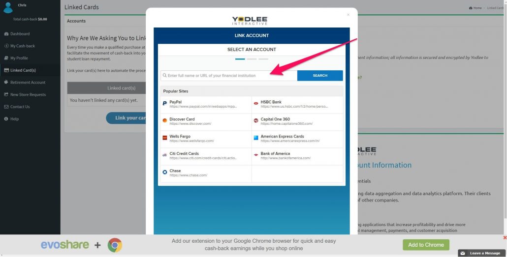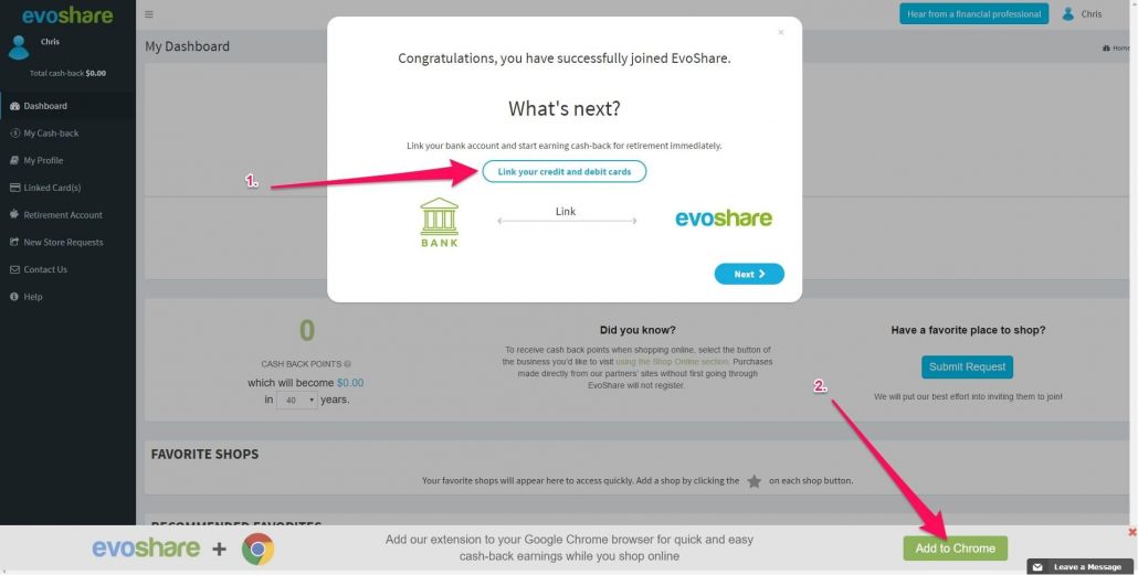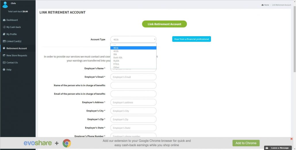 Nope. EvoShare will hold onto your cash-back until you eventually link a retirement or a student loan account. You also have the option of linking to a family member’s retirement plan or even your favorite charity.